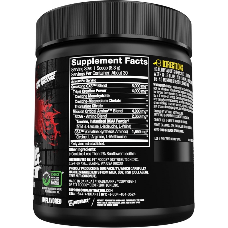Our creatine powder has been jacking up lifters in nearly 100 countries worldwide, now CREAKONG CX8 raises the standards. This triple-threat formula combines 4 grams of highly absorbable creatine monohydrate, malate, and magnesium-chelate that have been turbo-charged with 4 grams of BCAAs, taurine and our Creatine Synthesizing Matrix (CSM) of precursor amino acids like arginine and methionine. This unique nutrient tech drives internal creatine and ATP production while boosting muscle protein synthesis to support your already amped power efforts. Y'know, like a supercharger forcing oxygen into a v8 engine! Don't leave your results to chance - accelerate your creatine game with CREAKONG CX8. More CREATINE, more POWER, more MUSCLE!