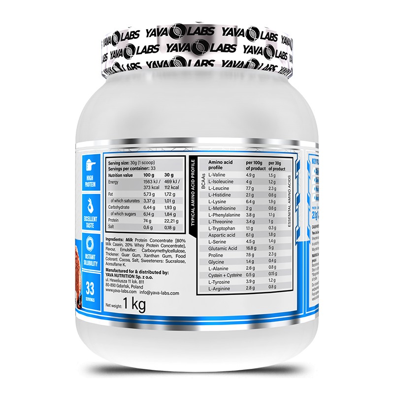 Each 2-kilogram pack is generous enough to provide 66 servings, each 30 grams (1 scoop). A scoop of our casein constitutes 22 grams of the milk-derived protein responsible for building and repairing muscles. Also, it contains 5 grams of Branched-Chain Amino Acids (BCAAs), responsible for building and rebuilding lean muscle mass, and 2.6 grams of Leucine, which promotes muscle mass or prevents protein loss in several conditions characterized by muscle protein wasting. It also provides energy amounting to 469 kJ / 112 kcal. We are committed to deriving our ingredients from nature and using very safe ingredients, including Milk Protein Concentrate (80% Milk Casein, 20% Whey Protein Concentrate), Flavour, Emulsifier: Carboxymethylcellulose, Sunflower Lecithin, Thickener: Guar Gum, Xanthan Gum, Food Colorant: Beet Red, Salt, Sweeteners: Sucralose, Acesulfame K.