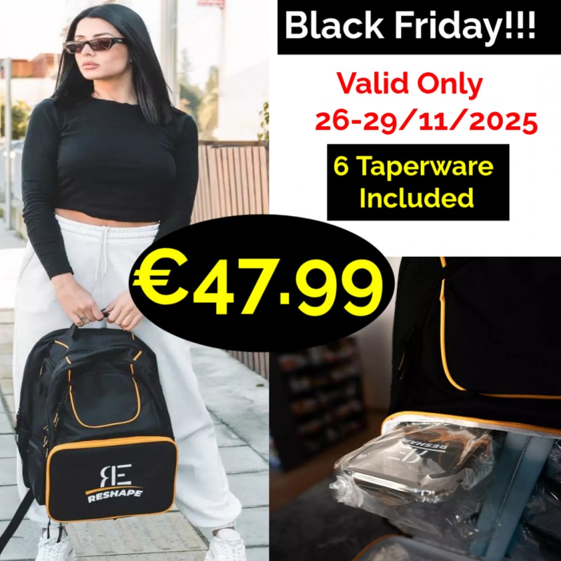 Reshape backpack is a revolutionary organizer for all the meals that you can take with you anywhere. All your foodstuff keeps fresh for more than 8 hours. It is made of high-quality material, has ergonomic shoulder straps and hand strap for travelling ease. Includes 6x Seal-tight Containers and 2x High-Quality Cooling Gels.