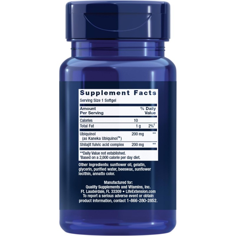 Contains ultra-absorbable ubiquinol CoQ10 augmented with PrimaVie shilajit to promote mitochondrial CoQ10 absorption to support greater cellular energy output