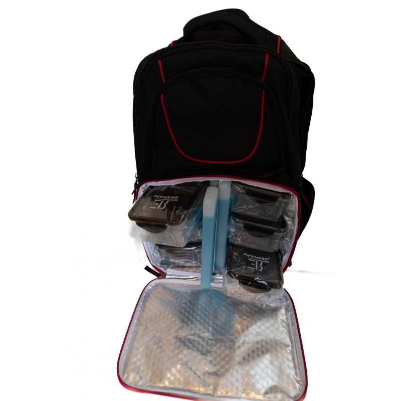 Reshape backpack is a revolutionary organizer for all the meals that you can take with you anywhere. All your foodstuff keeps fresh for more than 8 hours. It is made of high-quality material, has ergonomic shoulder straps and hand strap for travelling ease. Includes 6x Seal-tight Containers and 2x High-Quality Cooling Gels.