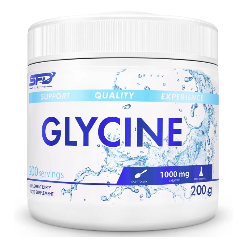 SFD GLYCINE is a powdered dietary supplement containing pure L-glycine. It is an endogenous amino acid, occurring naturally in the body. The product was developed for physically active individuals, as a supplement to a varied, daily diet.