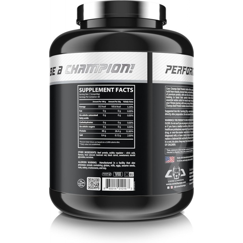 Fuel your training and support lean muscle development with Core Champs Beef Isolate, a high-quality beef protein isolate formula designed for athletes, gym-goers, and anyone looking to increase daily protein intake with a clean, effective supplement.