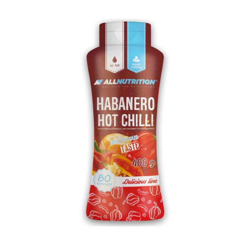 Exp 31/05/2026 ALLNUTRITION SAUCE HABANERO HOT CHILLI is a delicious, savoury, aromatic, and low-calorie sauce. Free from sugar and fat. Available in the mouth-watering Habanero Hot Chilli flavour, it's the perfect addition to your diet meals. The proven recipe with top-quality ingredients guarantees an extraordinary taste experience.