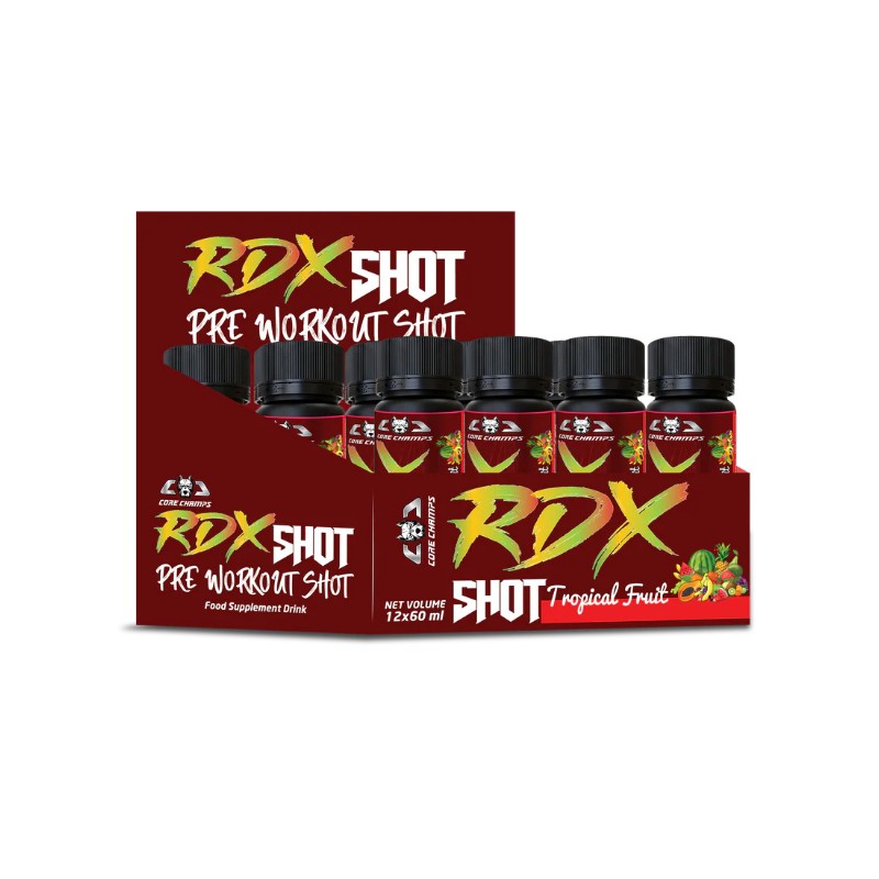Unleash your full training potential with Core Champs RDX Shot, a ready-to-drink pre-workout supplement engineered to deliver intense energy, focus, and endurance in every shot. Specially formulated for athletes and fitness enthusiasts, this convenient liquid pre-workout is packed with a powerful blend of scientifically backed ingredients to help you push harder, train longer, and perform at your best.
