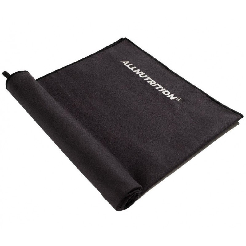 ALLNUTRITION MICROFIBER TOWEL BLACK is perfect for both training and relaxing on the beach. It features a practical elastic strap that makes folding and carrying easy, while also offering quick-drying properties.