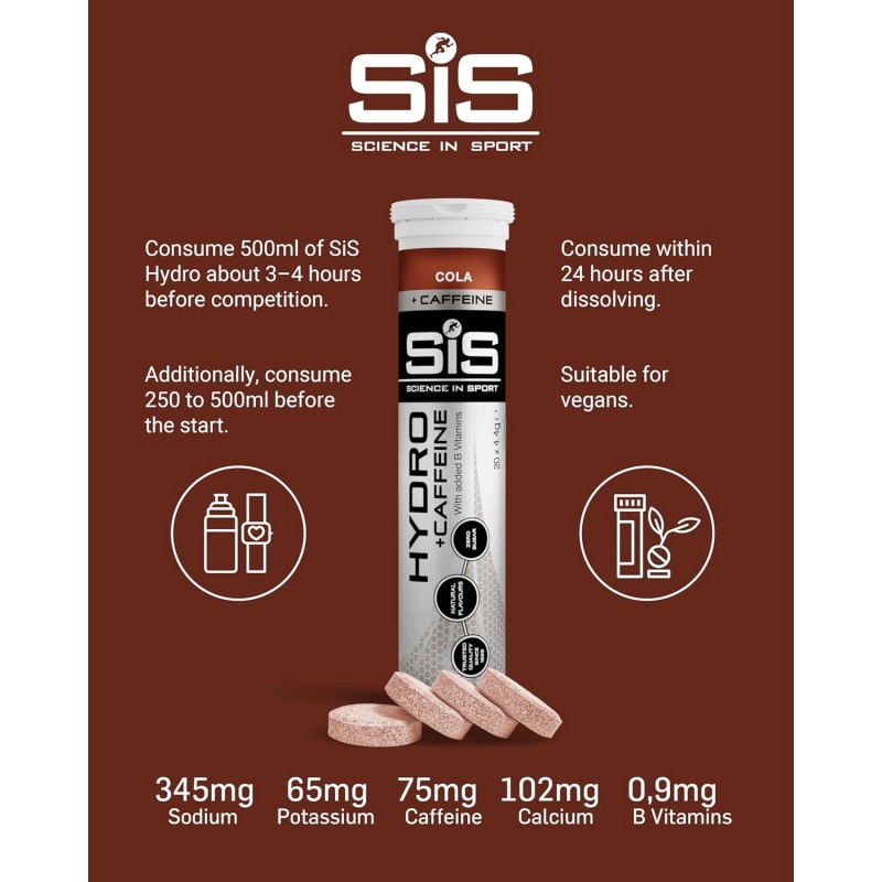 Exp 31/05/2026 Low calorie high electrolyte hydration with caffeine for a mental boost. Single tube of Cola flavored effervescent tablets containing precise levels of electrolytes to keep you hydrated. Award Winner! 2016 Men's Running Award for Best Pre-Race Nutrition Product.