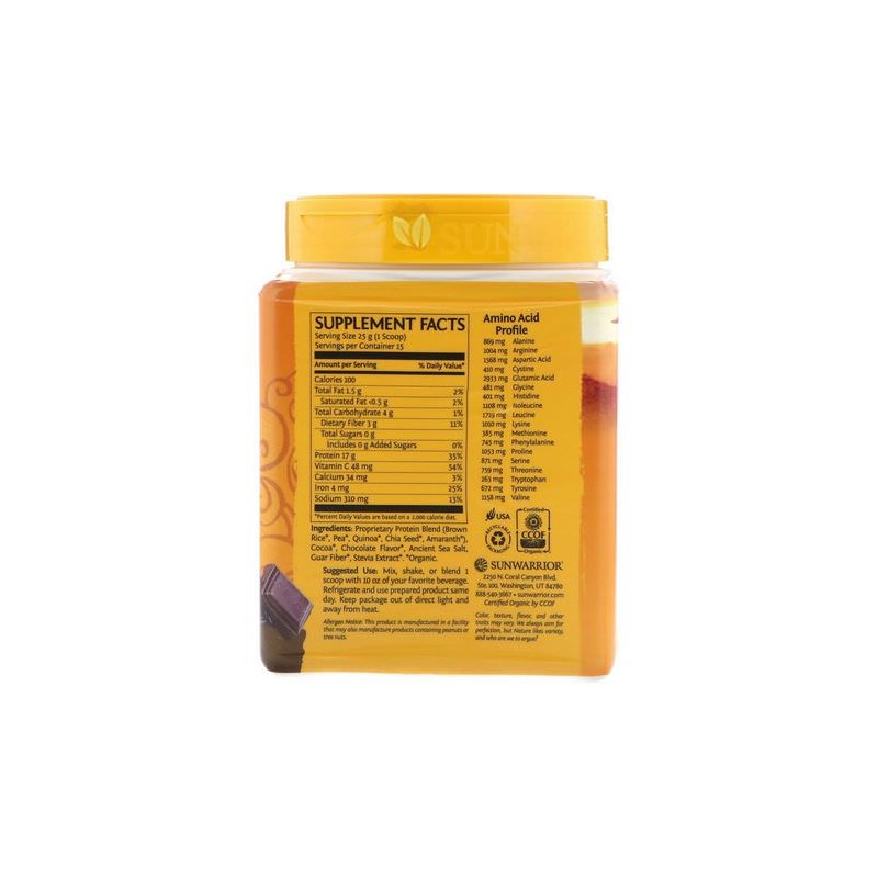 Proprietary Protein Blend (Organic Brown Rice, Organic Pea, Organic Quinoa, Organic Chia Seed, Organic Amaranth), Organic Cocoa, Organic Chocolate Flavor, Ancient Sea Salt, Organic Guar Fiber, Organic Stevia Extract.
