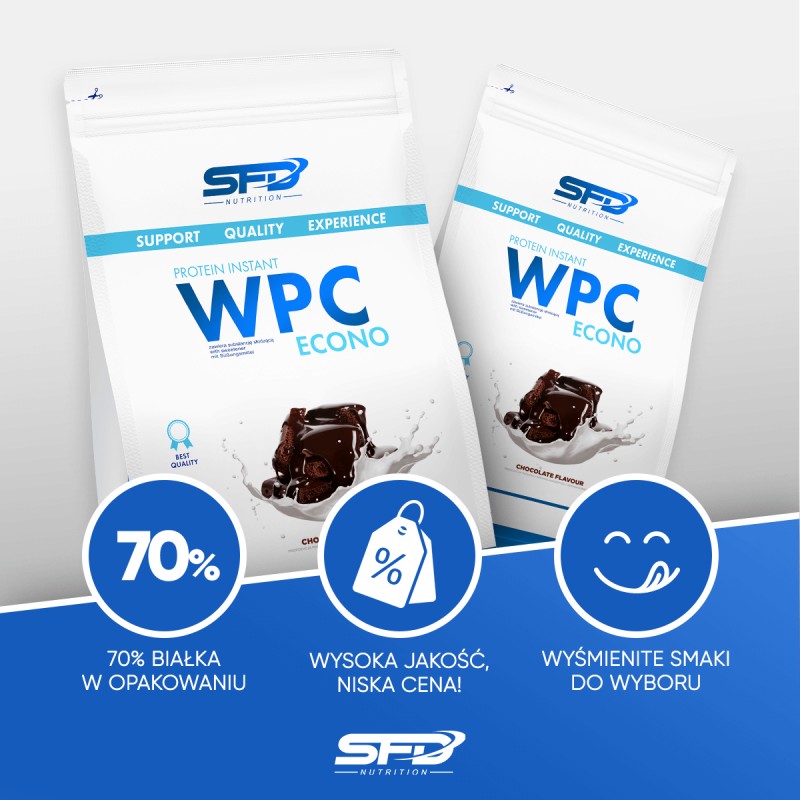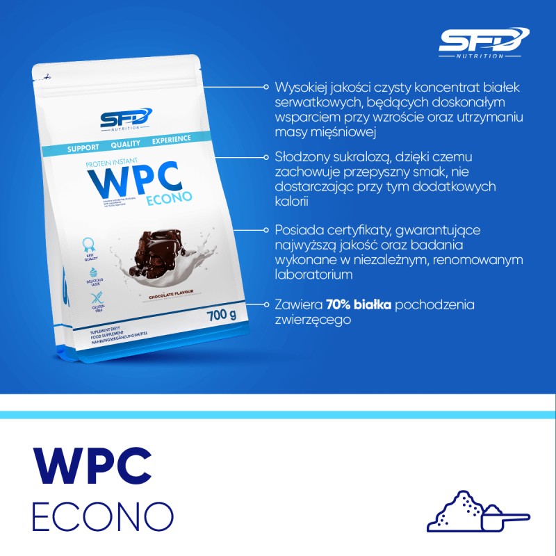 Build muscle mass and maintain healthy bones with SFD WPC PROTEIN ECONO whey protein ! It's an excellent source of protein for all active people – regardless of their fitness level.