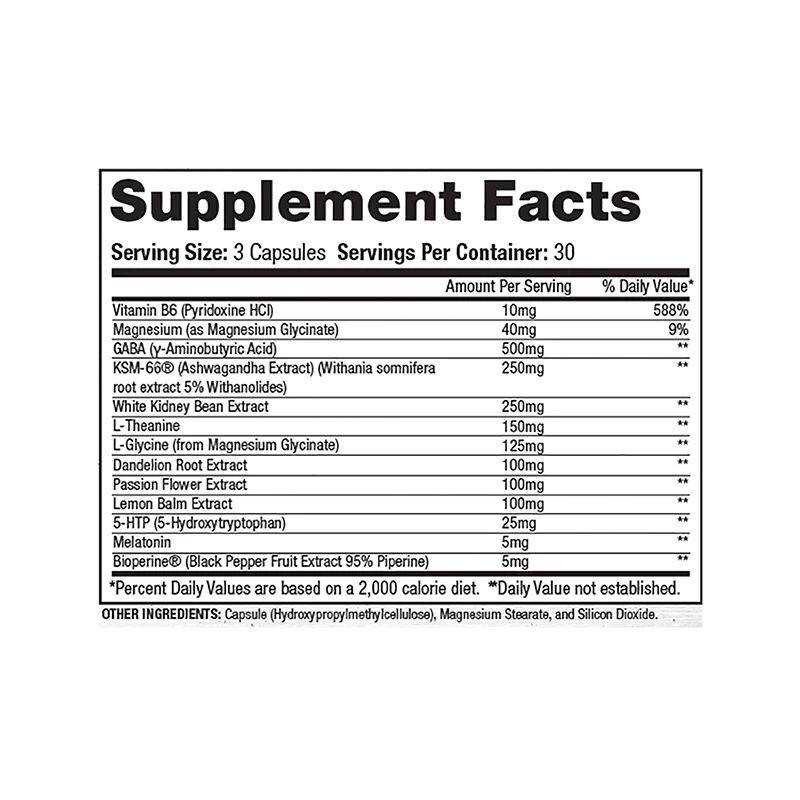 | GABA (y-Aminobutyric Acid) | 500 mg |
