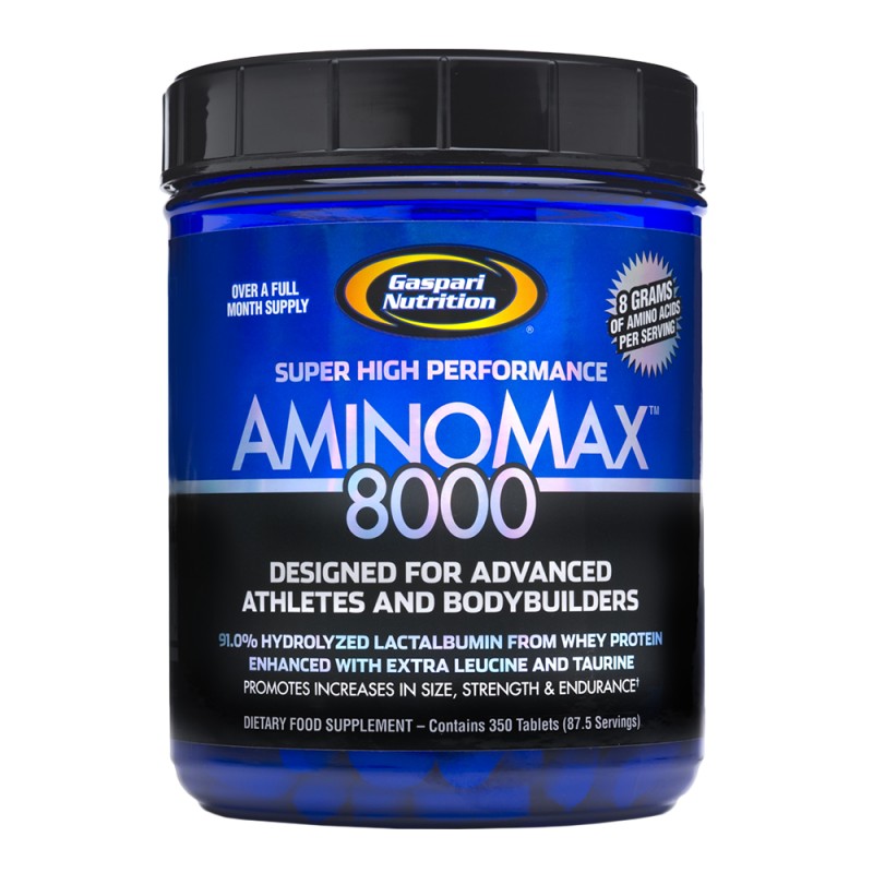 Gaspari Nutrition’s AminoMax™ 8000 is a scientifically designed blend of 91% hydrolyzed lactalbumin from whey protein, containing very low molecular weight proteins, di- and tri-peptides and individual amino acids infused with additional L-Leucine and L-Taurine, proven to be exceedingly beneficial to all types of athletes and bodybuilders. This unique, innovative formula provides the educated consumer with a highly useful and bioavailable product that delivers a broad array of the very building blocks you must have to grow and maintain skeletal muscle tissue and mass. Unlike many of our competitors products that use higher molecular weight whey protein concentrates or even isolates, the hydrolyzed protein used in AminoMax™ 8000 is rich in di- and tri-peptides to insure super fast absorption for super fast delivery to your muscles.